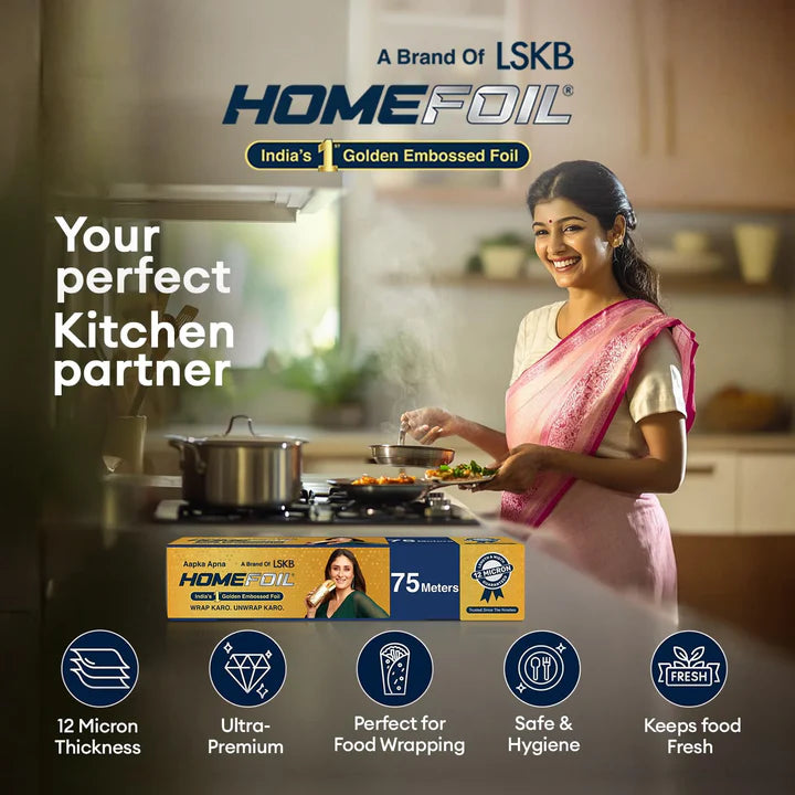 HOMEFOIL is the Ultra-Premium range of house foil. It’s India’s first Golden Embossed Foil, and one of the thickest in the category. It always keeps food germ-free, fresh,safe, hygienic and highly presentable.